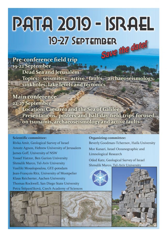 The 10th PATA Days, which were planned for September 2019 in Israel, have to be cancelled. The next regular PATA meeting will therefore be held in Chile 2020. This is the bad news. The good news is that there will be a student summer school organized by the IFG EGSHaz from 24-27 September, 2019, in Prague (Czech Republic). Petra Štěpančíková and her team are currently working on the schedule. The summer school will mainly address students and PhD students interested in earthquake geology, paleoseismology, and tectonic geomorphology. We will likely have two days of lectures & exercises and two days of field trips. More information will be available soon, so stay tuned.